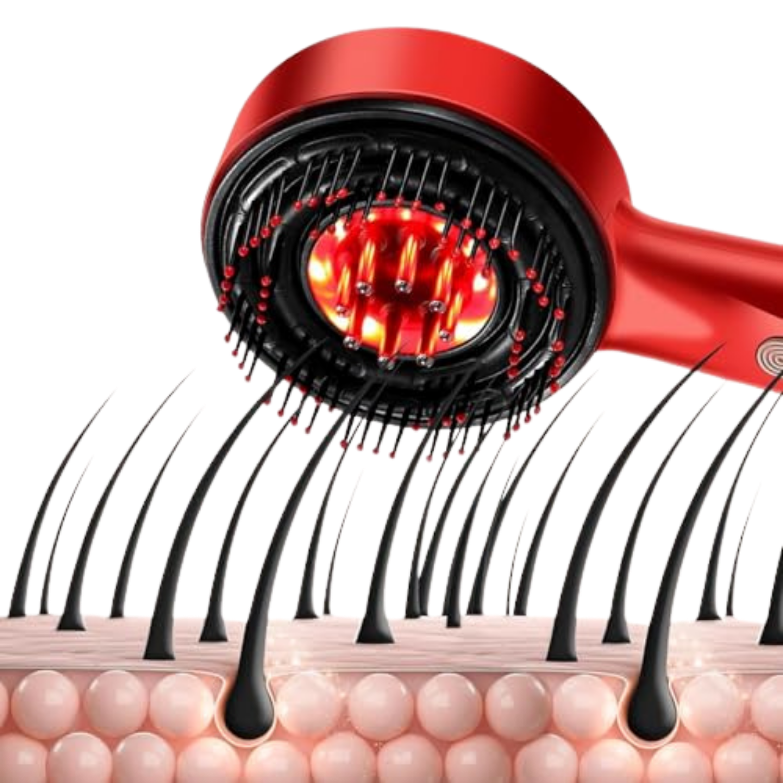 Advanced red light and micro-vibration technology penetrates deep into the scalp, boosts circulation, revitalizes hair follicles, and supports fuller, stronger hair from the root.